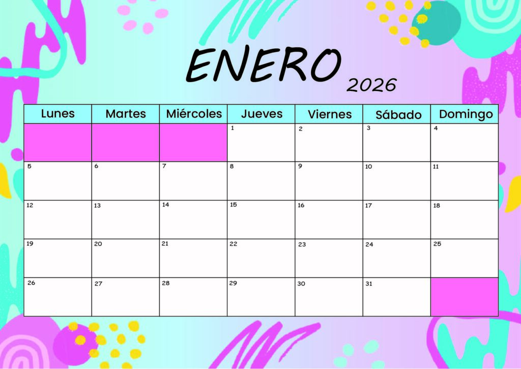 Descarga tu calendario, imprímelo y empieza a rellenarlo. Ideal para tenerlo visible y planificar de forma sencilla.